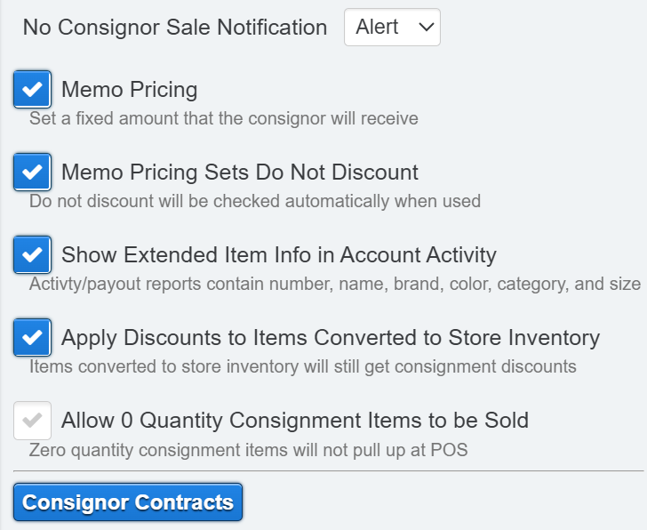 Check box if you want to allow consignment inventory to be sold even though it's zero quantity. This is similar to how store owned inventory works when it sells at zero quantity. The software will quickly increase the stock to allow the sale of the item(s).