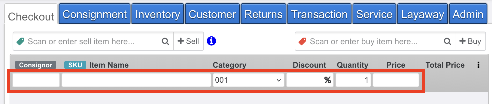 Line Entry Area: Full Checkout view including the line-entry panel.