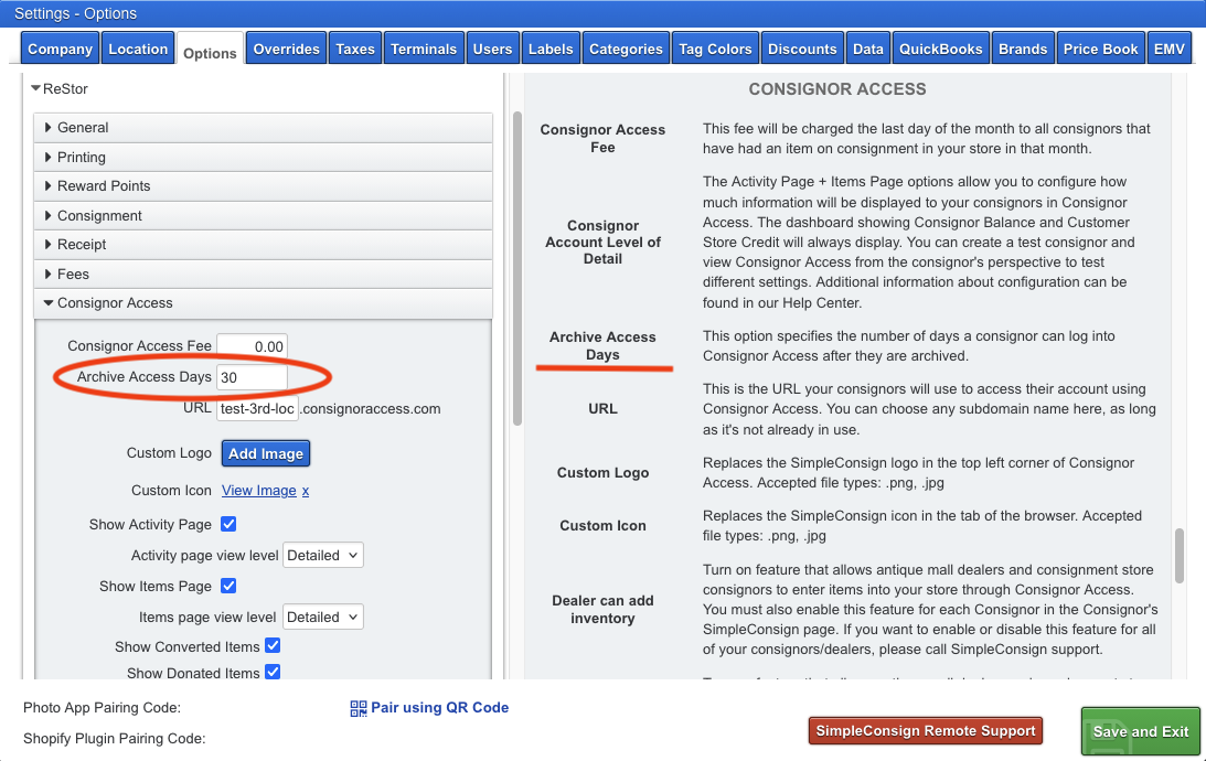 Decide whether you want archived consignors to remain able to view Consignor Access for a period of time. Your account includes a configurable option to limit how long archived consignors retain access (shown near the bottom of the article).