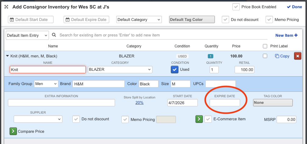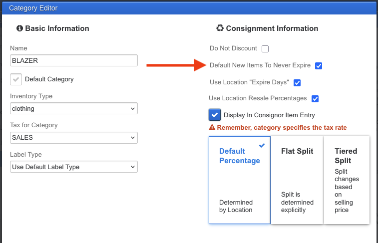 With this setting checked when you add inventory under this category the expire date for consignment inventory will be blank: