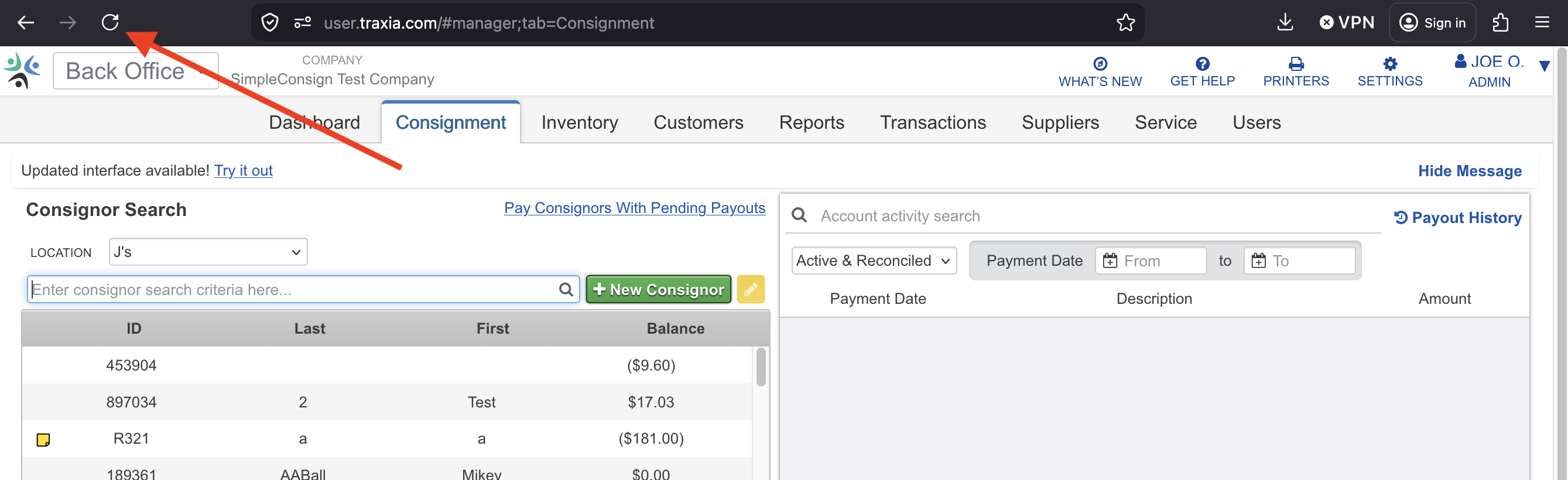 You'll see a circle icon on the top of the browser, or just hit F5 on your keyboard